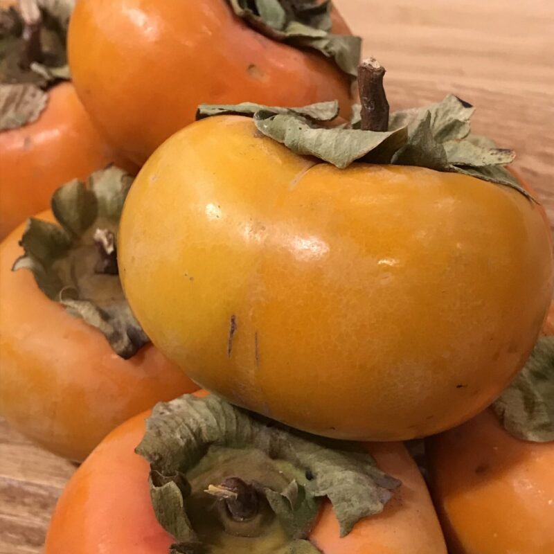 Fuyu persimmons variety is bright orange, naturally sweet fruit, crunchy like an apple when firm, honey-rich and jammy when soft.