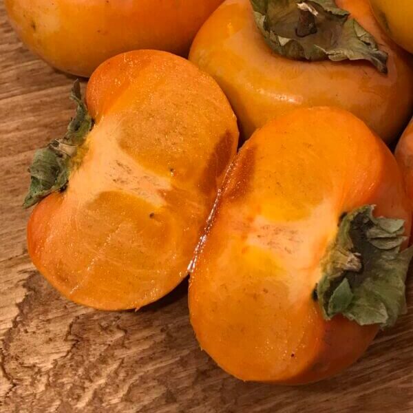 Fuyu pesimmmons are the crisp, sweet, slice-and-eat-like-an-apple variety — perfect for salads, smoothies, cheese boards, baking, dehydrating, and snacking right out of hand.